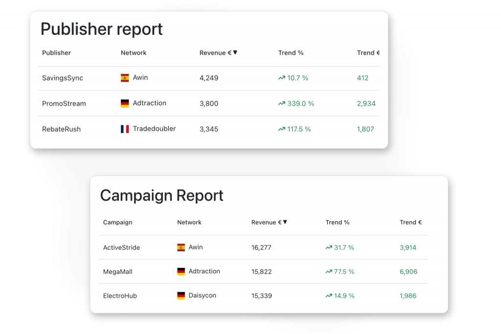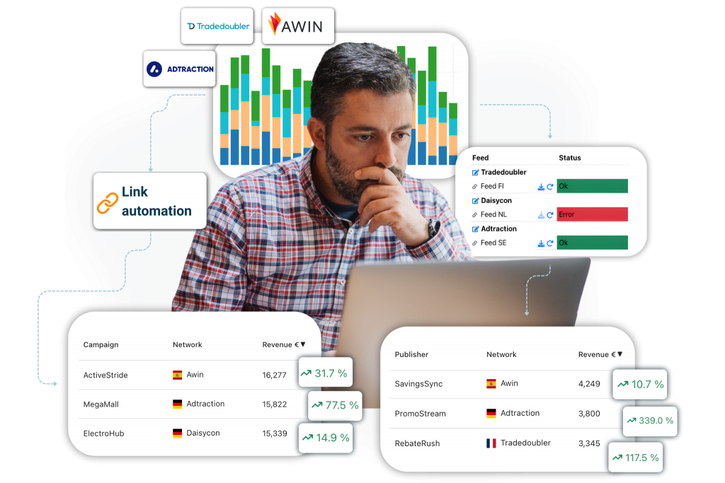 Key to success is having overview on how your affiliates perform. We boil all network data down to what matters and gives you over and the ability to filter and retrieve custom data across multiple affiliate networks