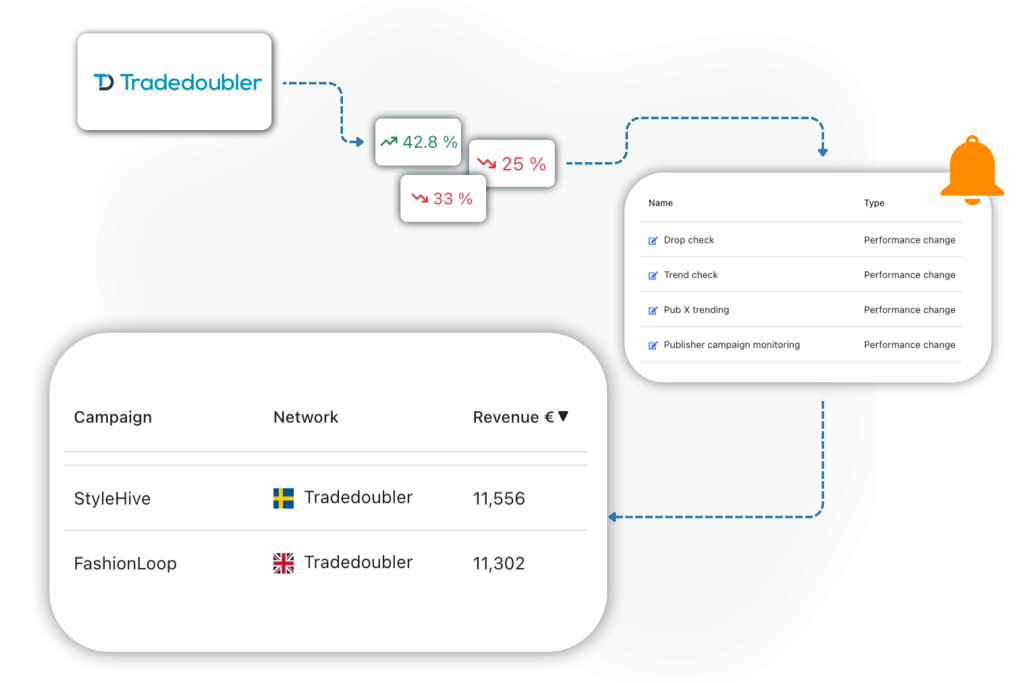 We check every hour for registered sales, clicks, feed availability, and campaign status across all connected networks. Set automated alerts to stay on top when something in your campaign changes.