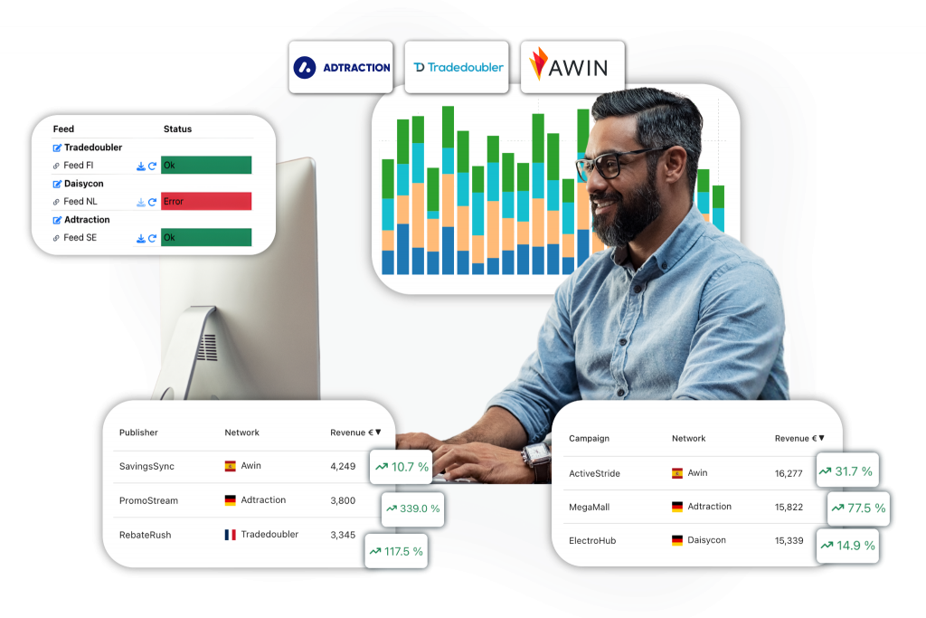 Connect your affiliate networks via API, consolidate publisher and campaign data, manage product feeds per network, and monitor campaign performance hourly. You can do all of it in one platform.