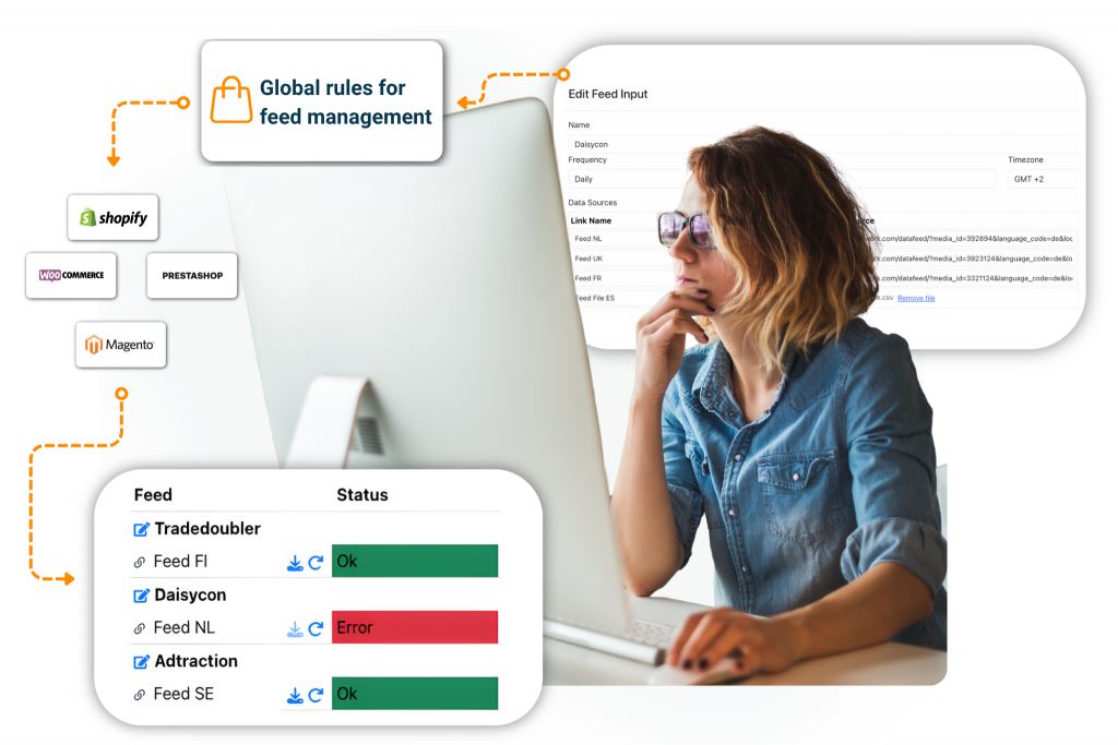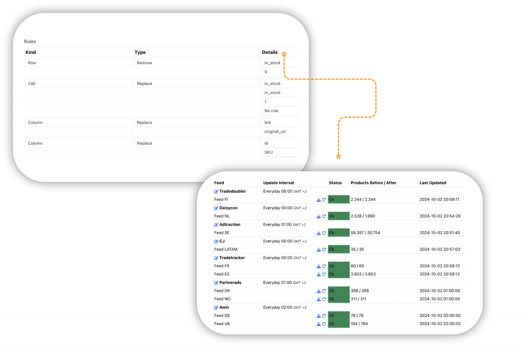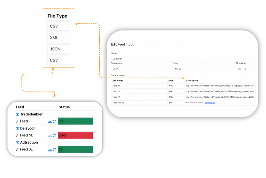 Our platform automates the entire process of affiliate data feed management. It integrates directly with major affiliate networks, streamlines feed updates, ensures error-free data synchronization, and eliminates manual work by managing multiple feeds in one place.
