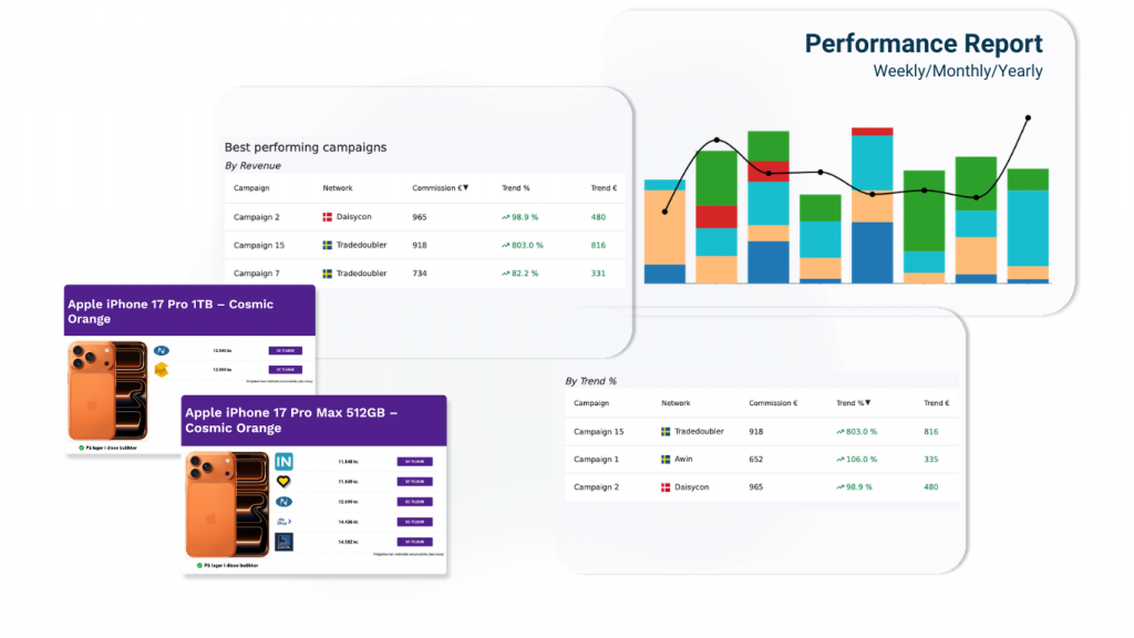 Access to campaigns across networks including Daisycon, Tradedoubler, Adtraction, Impact, Partner-ads, and Awin expands monetisation opportunities.